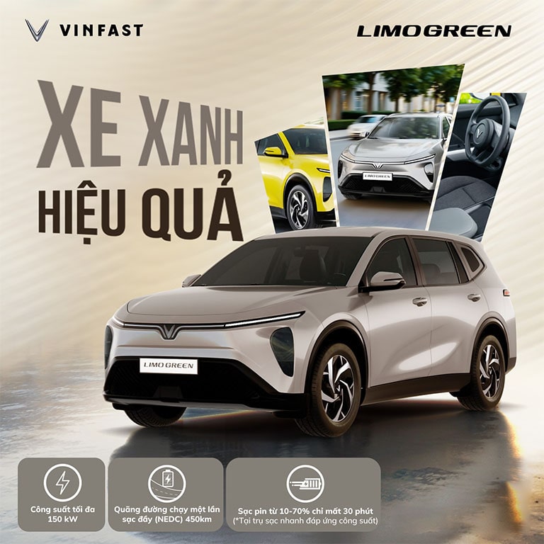 Sở hữu Limo Green hôm nay để mỗi chuyến xe đều nhẹ ga, nhẹ phí, dẫn đầu xu hướng chuyển đổi xanh, hiệu quả!