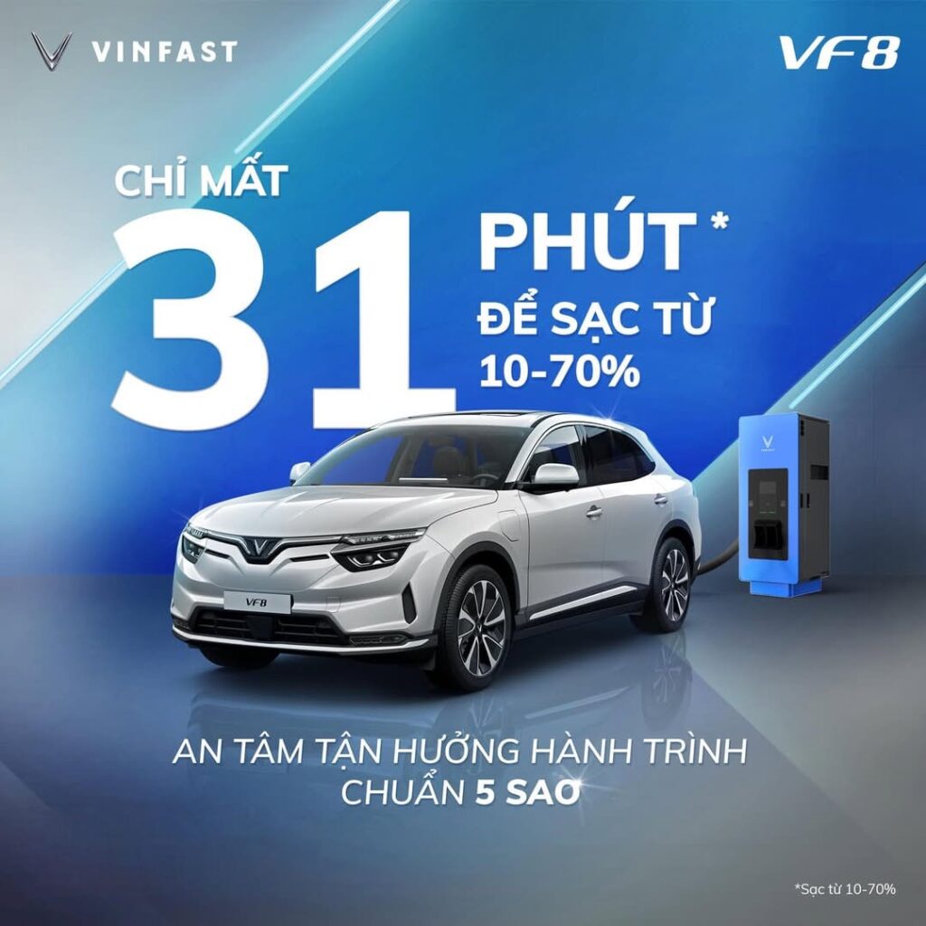 VF 8 – 31 PHÚT SẠC – ĐỦ PIN CHO QUÃNG ĐƯỜNG LÊN ĐẾN 562 KM